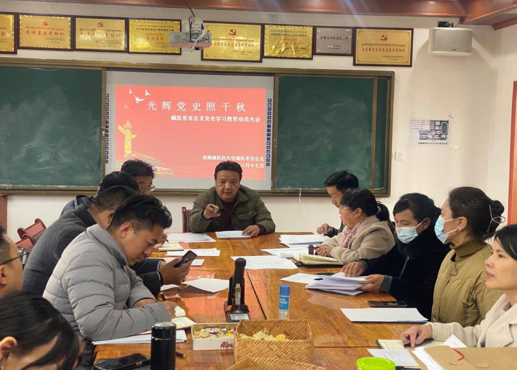 为深入学习贯彻习近平总书记在党史学习教育动员大会上的重要讲话精神,结合学校实际,3月17日,藏医系党总支召开党史学习教育动员大会,对党史学习教育工作做出动员安排。会议由党总支书记达娃平措主持。