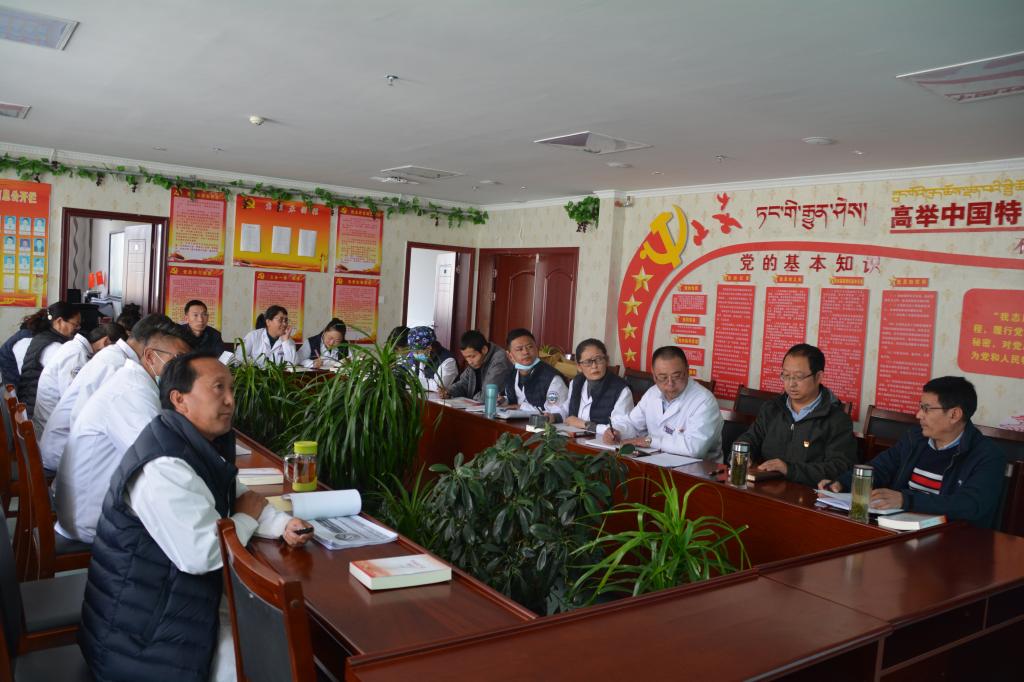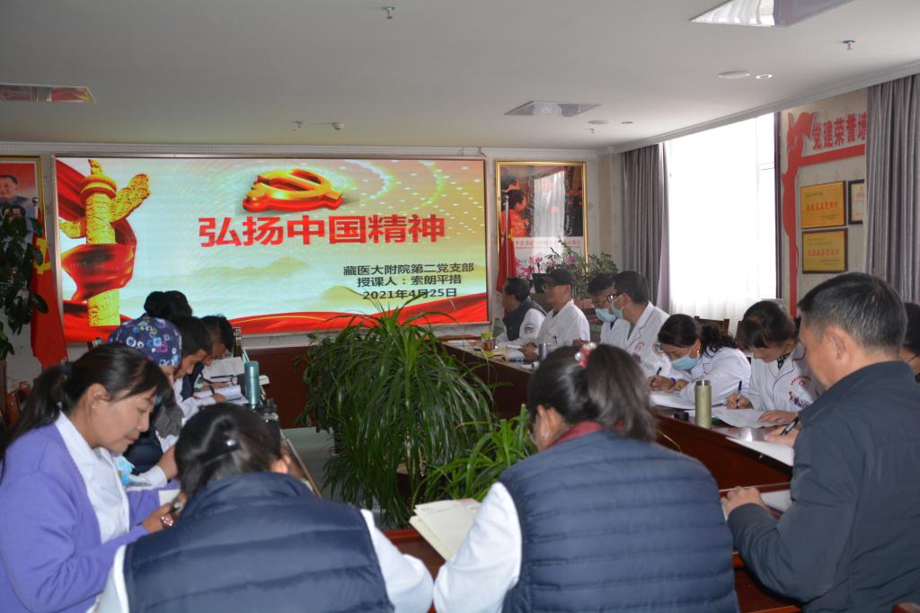 4月26日下午,学校附属医院第二党支部书记索朗平措讲弘扬中国精神,争做优秀党员专题党课。全院党员及入党积极分子共30人参加,校宣传部韦安有参加。
